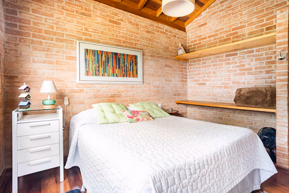 “Tivemos uma ótima estadia! A casa é super aconchegante, limpa e bem equipada para passar dias tranquilos em meio à natureza. O anfitrião foi excelente – muito atencioso e solícito, nos ajudando sempre que precisamos. A única sugestão seria em relação à TV: apesar de ser smart, só era possível ver o Prime Video disponível. Seria ótimo ter acesso também a outros aplicativos de streaming, como Netflix ou YouTube.”